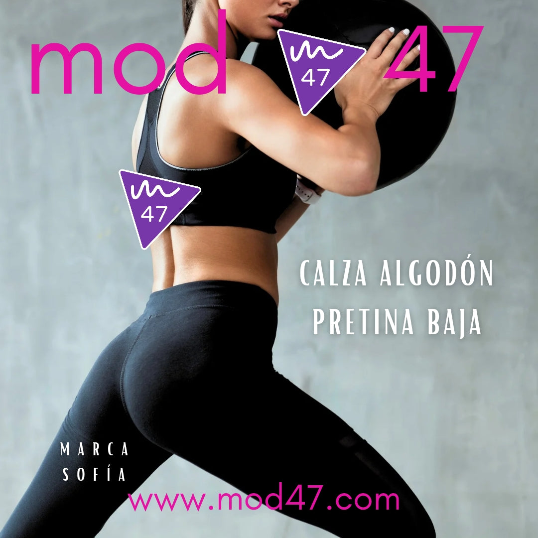 Calza pitillo de Algodón elasticado Marca Sofía. Tiro alto y doble pretina.